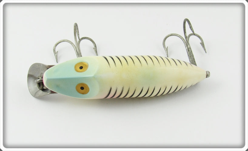 This is a nice old Heddon Pearl & Black Shore River Runt lure that was sold on Lure Lagoon! Vintage old fishing lures are added for sale often so keep checking back! I buy old lures so feel free to contact me if you have any to sell.