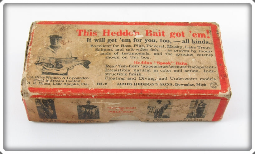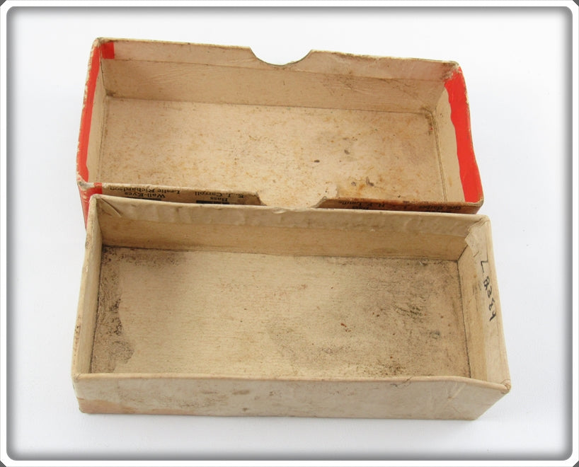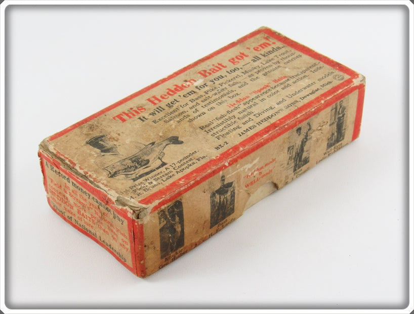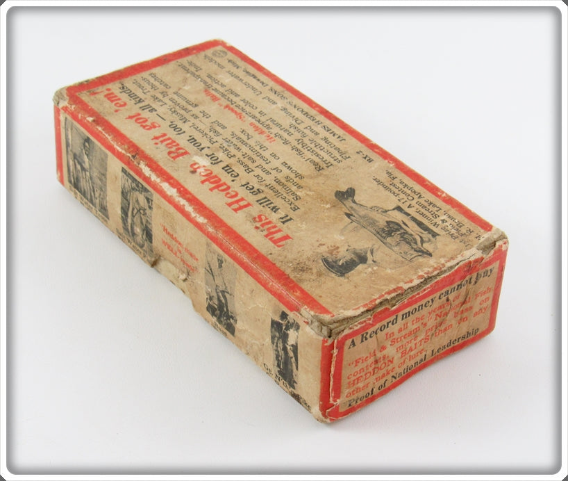 This is a nice old Heddon Pike Scale Jointed River Runt Spook Floater lure box that was sold on Lure Lagoon! Vintage old fishing lures are added for sale often so keep checking back! I buy old lures so feel free to contact me if you have any to sell.