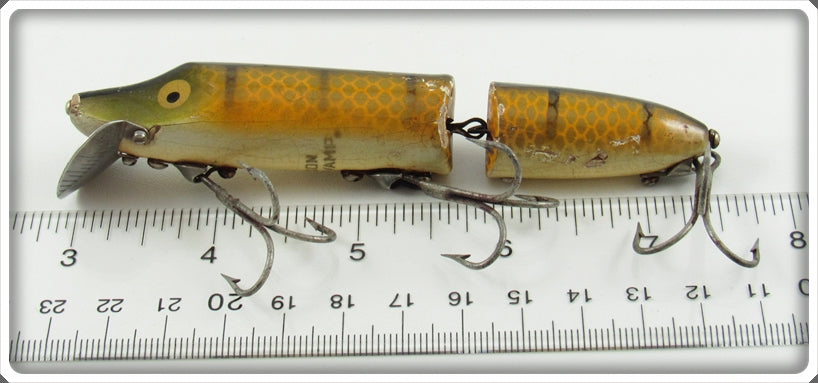 This is a nice old Heddon Pike Scale Jointed Vamp lure that was sold on Lure Lagoon! Vintage old fishing lures are added for sale often so keep checking back! I buy old lures so feel free to contact me if you have any to sell.