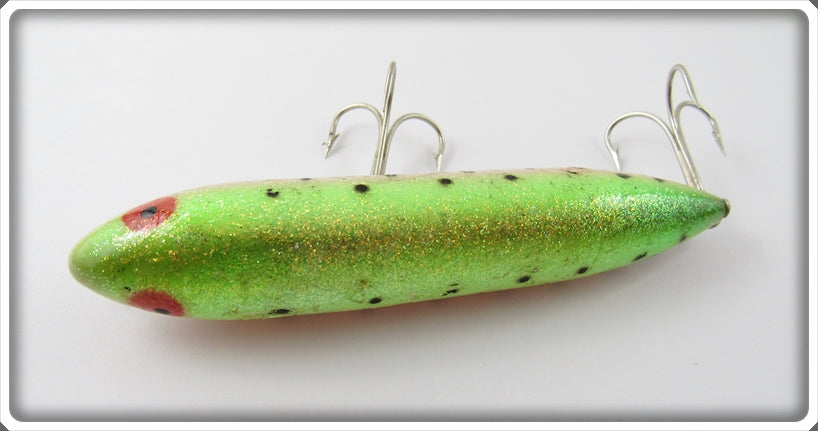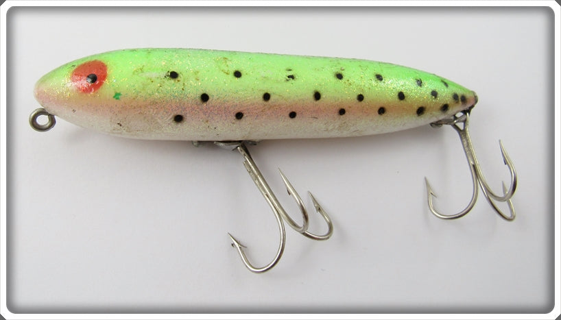 This is a nice old Heddon G Fleck Rainbow Zara Spook lure that was sold on Lure Lagoon! Vintage old fishing lures are added for sale often so keep checking back! I buy old lures so feel free to contact me if you have any to sell.