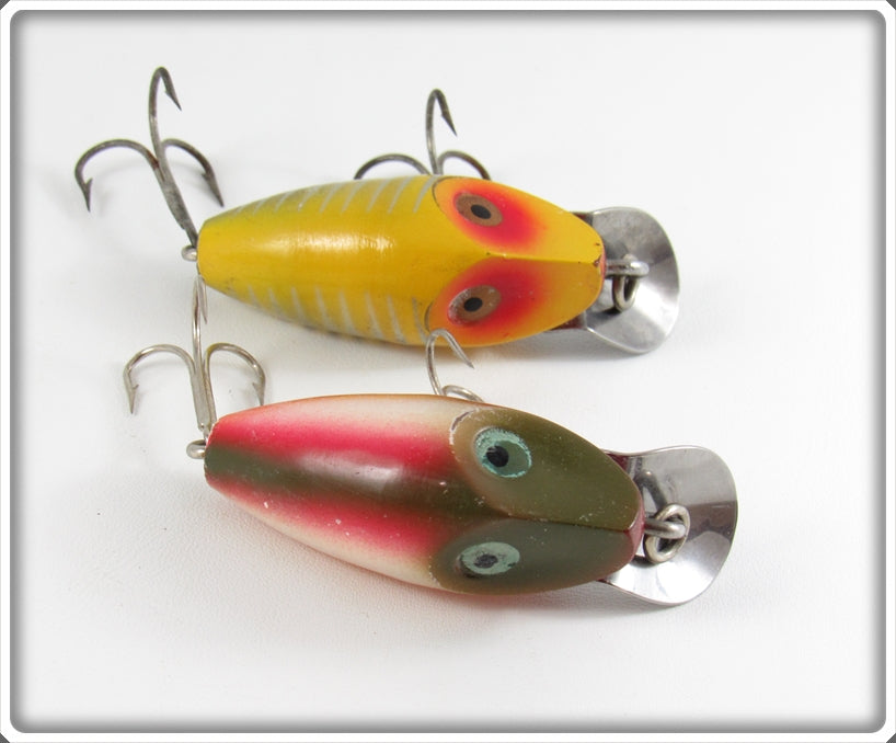 This is a nice old Heddon Rainbow & Yellow Shore Midget Digit lure pair that was sold on Lure Lagoon! Vintage old fishing lures are added for sale often so keep checking back! I buy old lures so feel free to contact me if you have any to sell.