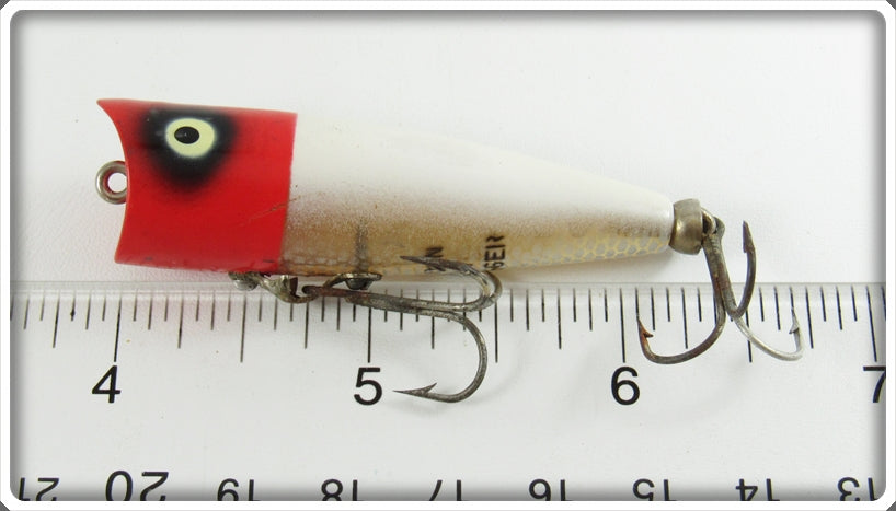 This is a nice old Heddon Red Head White Tiny Chugger lure that was sold on Lure Lagoon! Vintage old fishing lures are added for sale often so keep checking back! I buy old lures so feel free to contact me if you have any to sell.