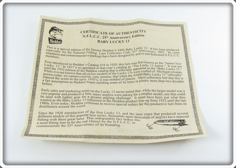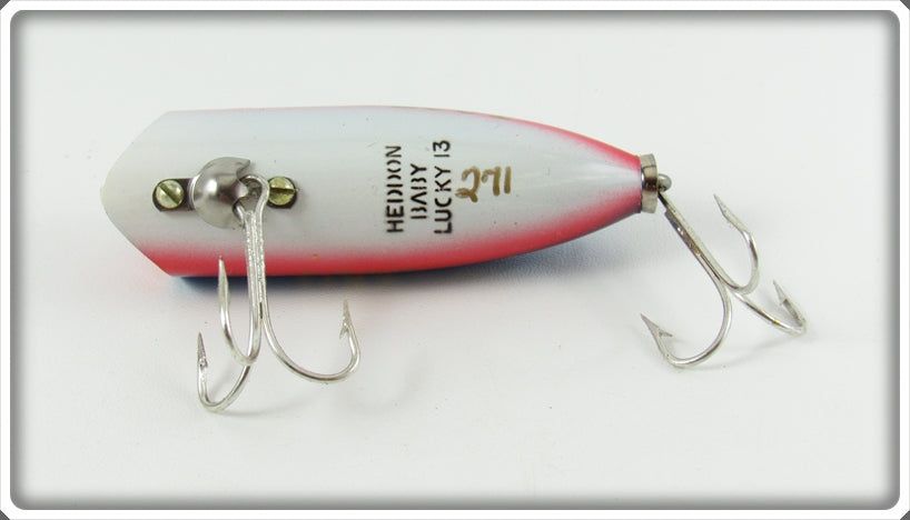 This is a nice old Heddon Red, White & Blue NFLCC Baby Lucky 13 lure that was sold on Lure Lagoon! Vintage old fishing lures are added for sale often so keep checking back! I buy old lures so feel free to contact me if you have any to sell.
