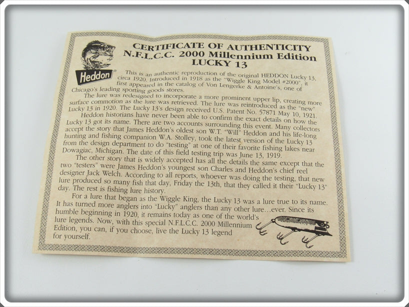 This is a nice Heddon Red, White & Blue NFLCC National Fishing Lure Collectors Club Lucky 13 lure that was sold on Lure Lagoon! Vintage old fishing lures are added for sale often so keep checking back! I buy old lures so feel free to contact me if you have any to sell.