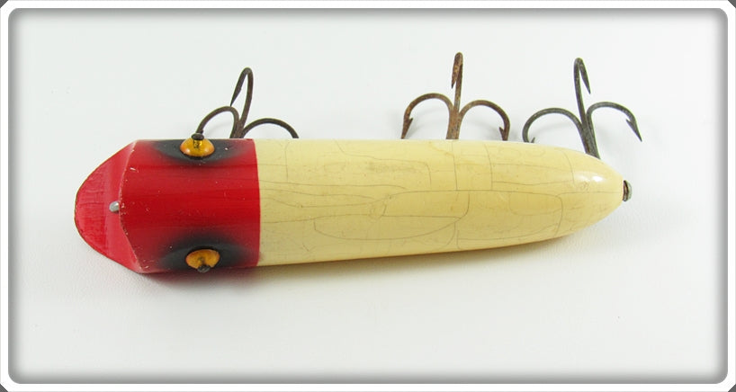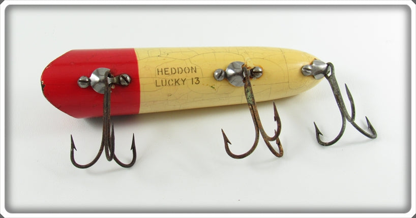 This is a nice old Heddon Red Head White Tack Eye Lucky 13 lure that was sold on Lure Lagoon! Vintage old fishing lures are added for sale often so keep checking back! I buy old lures so feel free to contact me if you have any to sell.