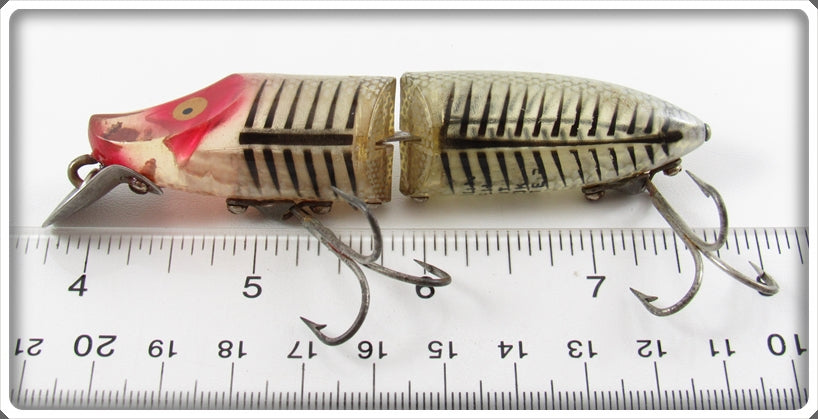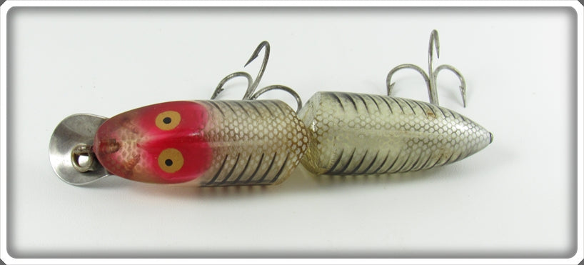 This is a nice old Heddon Silver Shore Jointed River Runt lure that was sold on Lure Lagoon! Vintage old fishing lures are added for sale often so keep checking back! I buy old lures so feel free to contact me if you have any to sell.