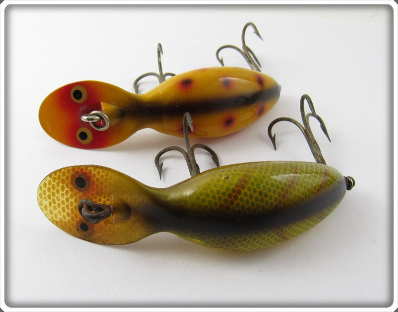 This is a nice old lure pair that was sold on Lure Lagoon! Vintage old fishing lures are added for sale often so keep checking back! I buy old lures so feel free to contact me if you have any to sell.