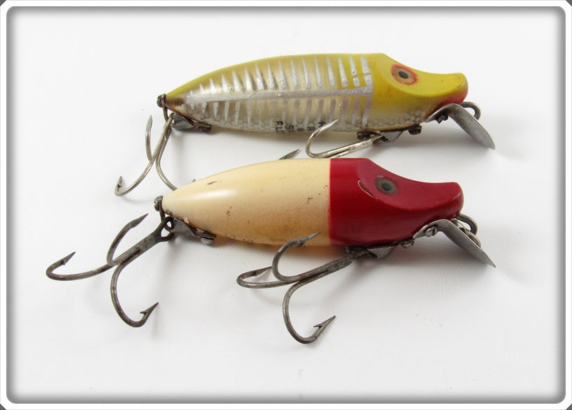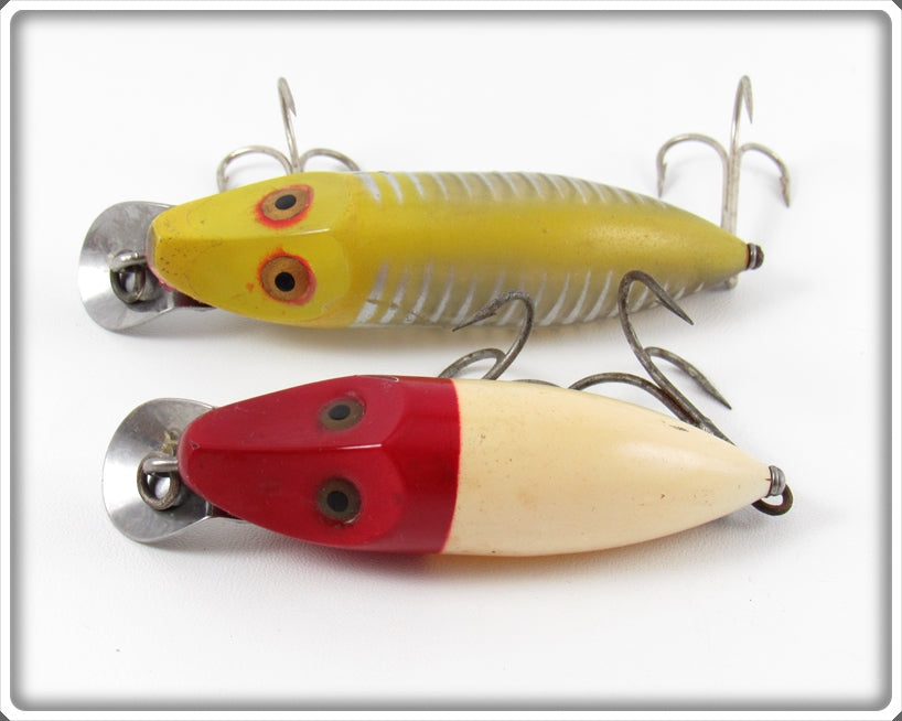 This is a nice old Heddon White Red Head & Yellow Shore River Runt lure pair that was sold on Lure Lagoon! Vintage old fishing lures are added for sale often so keep checking back! I buy old lures so feel free to contact me if you have any to sell.