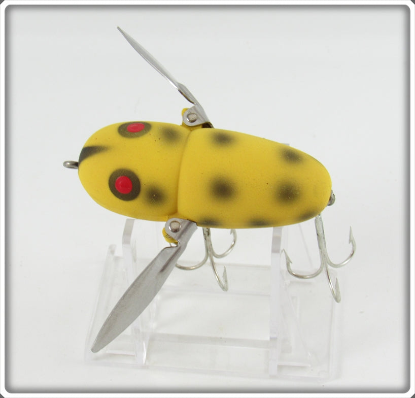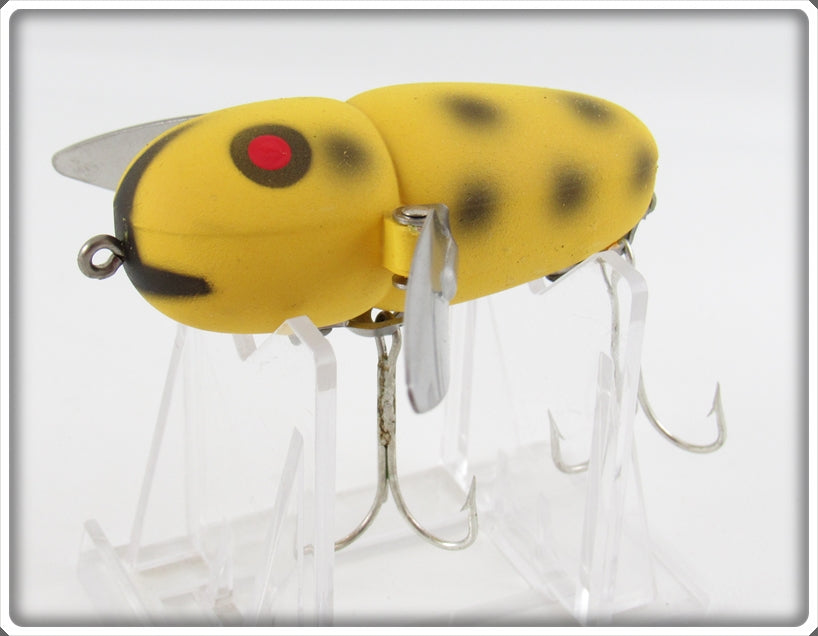 This is a nice old Heddon Yellow Black Spots Crazy Crawler lure that was sold on Lure Lagoon! Vintage old fishing lures are added for sale often so keep checking back! I buy old lures so feel free to contact me if you have any to sell.