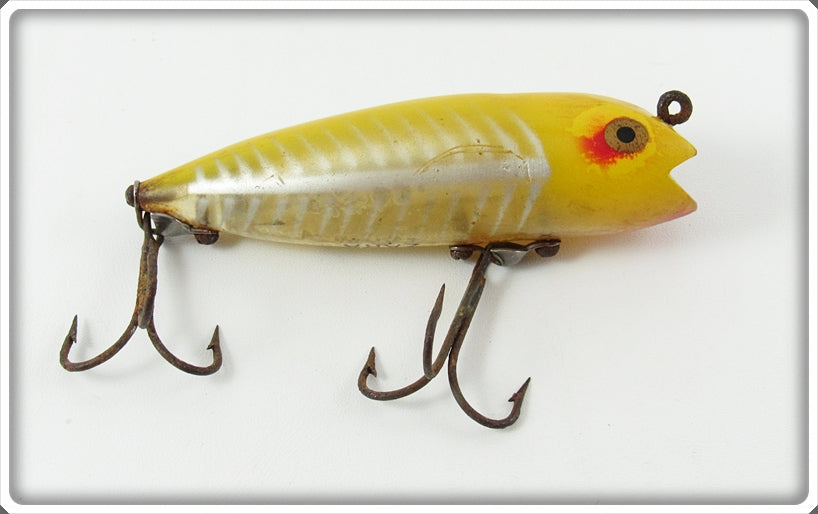 This is a nice old Heddon Yellow Shore Darting Zara lure that was sold on Lure Lagoon! Vintage old fishing lures are added for sale often so keep checking back! I buy old lures so feel free to contact me if you have any to sell.