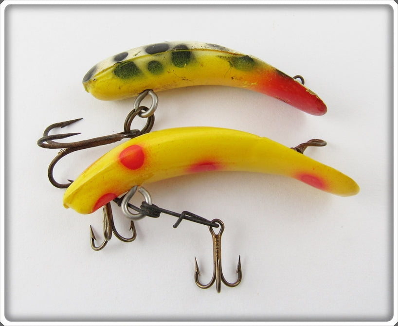 This is a nice old lure pair that was sold on Lure Lagoon! Vintage old fishing lures are added for sale often so keep checking back! I buy old lures so feel free to contact me if you have any to sell.