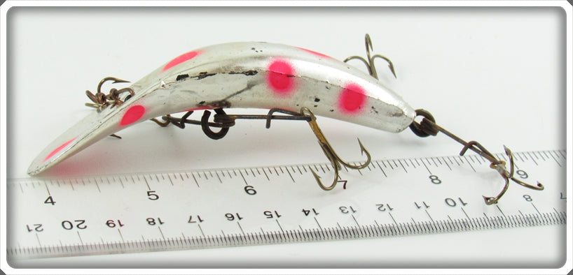 This is a nice old Helin Silver Plate Red Fluorescent Spots Flatfish lure that was sold on Lure Lagoon! Vintage old fishing lures are added for sale often so keep checking back! I buy old lures so feel free to contact me if you have any to sell.