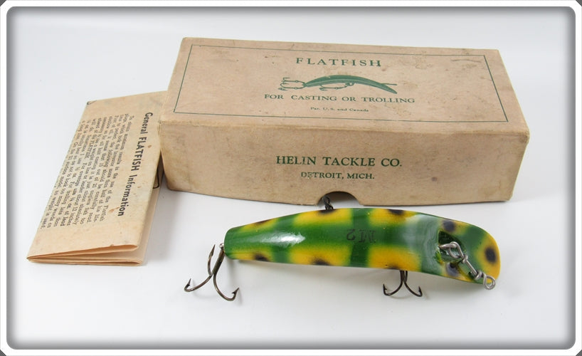 This is a nice old Helin Frog Spot M2 Flatfish lure that was sold on Lure Lagoon! Vintage old fishing lures are added for sale often so keep checking back! I buy old lures so feel free to contact me if you have any to sell.