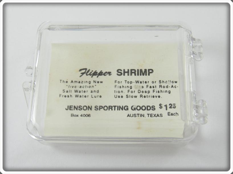 This is a nice old Jenson Sporting Goods Flipper Shrimp lure that was sold on Lure Lagoon! Vintage old fishing lures are added for sale often so keep checking back! I buy old lures so feel free to contact me if you have any to sell.