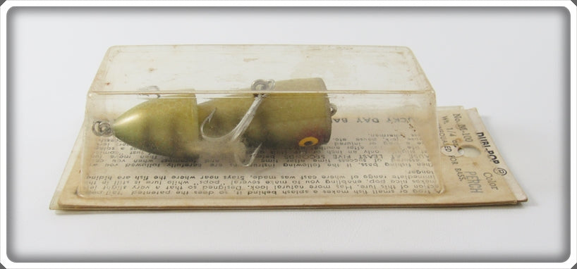 This is a nice old Lucky Day Bait Co Perch DubL-Pop lure that was sold on Lure Lagoon! Vintage old fishing lures are added for sale often so keep checking back! I buy old lures so feel free to contact me if you have any to sell.