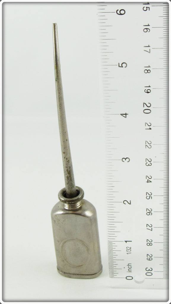 This is a nice old Made In USA Long Spout Reel Oiler that was sold on Lure Lagoon! Vintage old fishing lures are added for sale often so keep checking back! I buy old lures so feel free to contact me if you have any to sell.