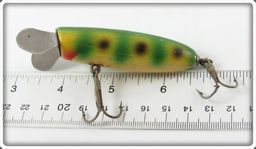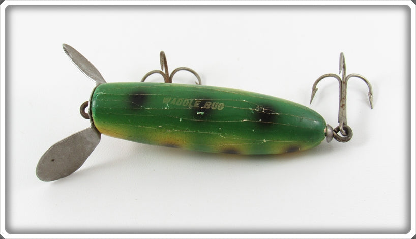 This is a nice old Makinen Frog Spot Waddle Bug lure that was sold on Lure Lagoon! Vintage old fishing lures are added for sale often so keep checking back! I buy old lures so feel free to contact me if you have any to sell.