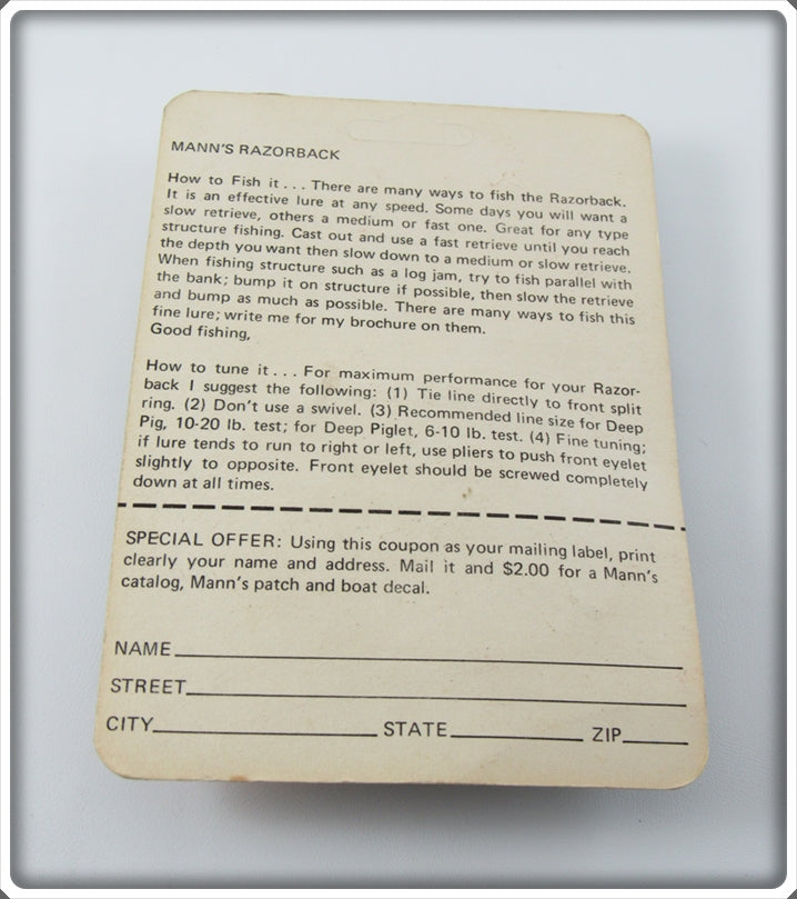 This is a nice old Mann's Natural Bass Razorback Piglet lure that was sold on Lure Lagoon! Vintage old fishing lures are added for sale often so keep checking back! I buy old lures so feel free to contact me if you have any to sell.