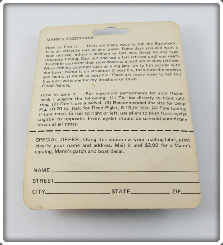 This is a nice old Mann's Natural Crawdad Razorback Piglet lure that was sold on Lure Lagoon! Vintage old fishing lures are added for sale often so keep checking back! I buy old lures so feel free to contact me if you have any to sell.