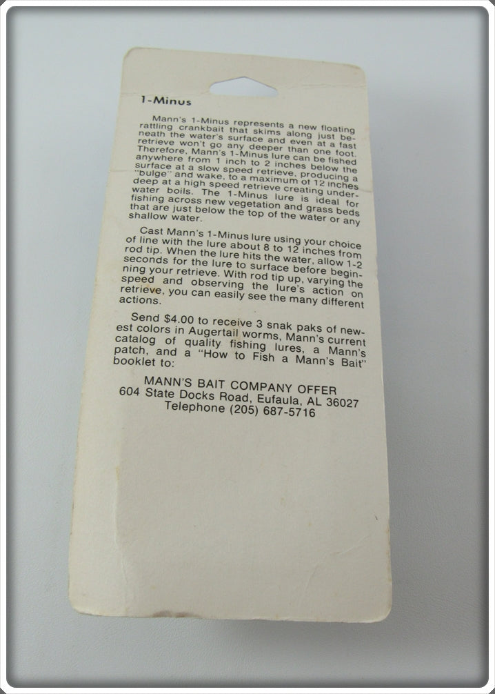 This is a nice old Mann's Bait Co The Alabama Reunion One Minus lure that was sold on Lure Lagoon! Vintage old fishing lures are added for sale often so keep checking back! I buy old lures so feel free to contact me if you have any to sell.