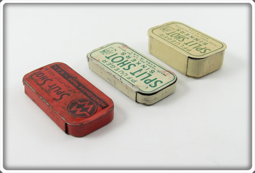 Montgomery Ward & Pflueger Split Shot Tin Lot Of Three