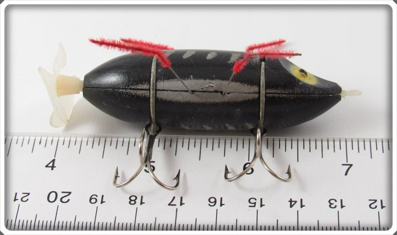 This is a nice old Mueller Perry Black & White Crazy Legs lure that was sold on Lure Lagoon! Vintage old fishing lures are added for sale often so keep checking back! I buy old lures so feel free to contact me if you have any to sell.