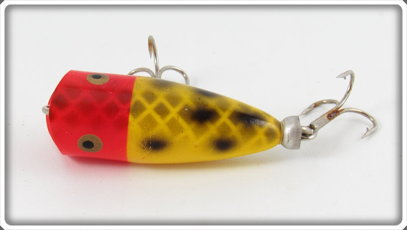 This is a nice old OK Fishing Tackle Red Head Frog Scale Chugger Type lure that was sold on Lure Lagoon! Vintage old fishing lures are added for sale often so keep checking back! I buy old lures so feel free to contact me if you have any to sell.