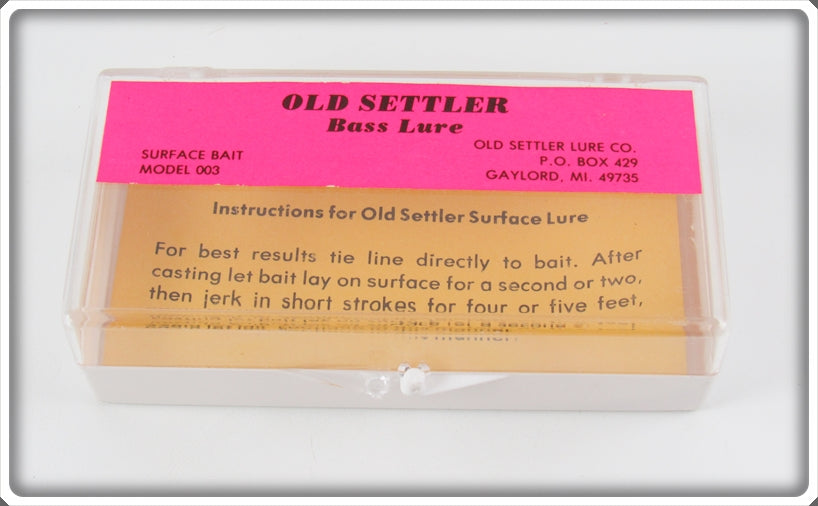 This is a nice old Old Settler Lure Co Old Settler Bass lure that was sold on Lure Lagoon! Vintage old fishing lures are added for sale often so keep checking back! I buy old lures so feel free to contact me if you have any to sell.