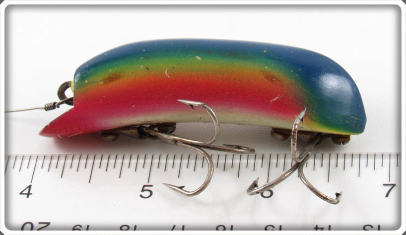 This is a nice old P&K Rainbow Bright Eyes lure that was sold on Lure Lagoon! Vintage old fishing lures are added for sale often so keep checking back! I buy old lures so feel free to contact me if you have any to sell.