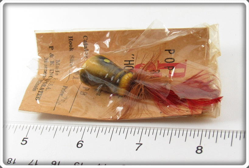 This is a nice old P&K Yellow & Black Pop-Ping Bug lure that was sold on Lure Lagoon! Vintage old fishing lures are added for sale often so keep checking back! I buy old lures so feel free to contact me if you have any to sell.