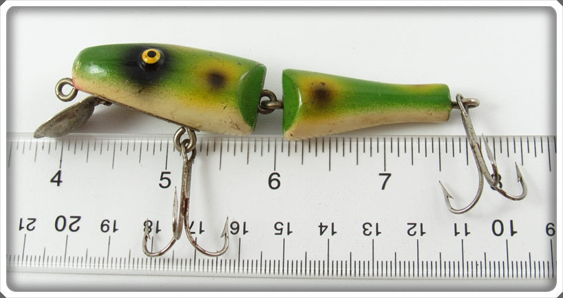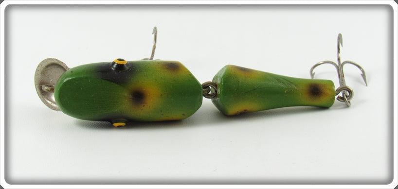 This is a nice old Paw Paw Frog Spot Jointed Baby Pikie lure that was sold on Lure Lagoon! Vintage old fishing lures are added for sale often so keep checking back! I buy old lures so feel free to contact me if you have any to sell.