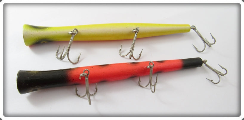 This is a nice old lure pair that was sold on Lure Lagoon! Vintage old fishing lures are added for sale often so keep checking back! I buy old lures so feel free to contact me if you have any to sell.