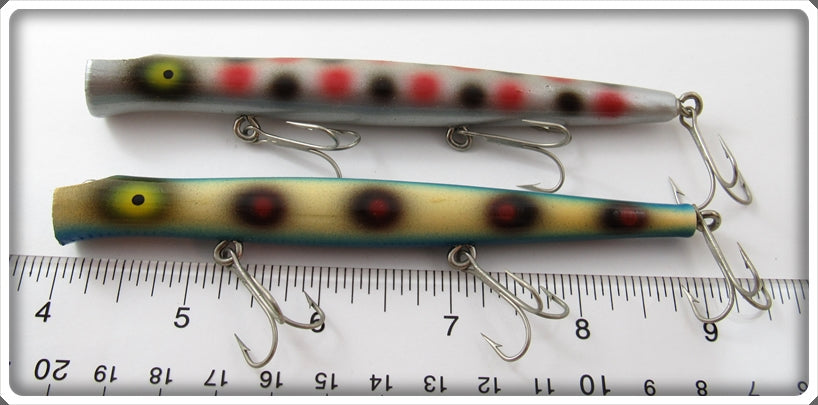This is a nice old lure pair that was sold on Lure Lagoon! Vintage old fishing lures are added for sale often so keep checking back! I buy old fishing lures so feel free to contact me if you have any to sell.