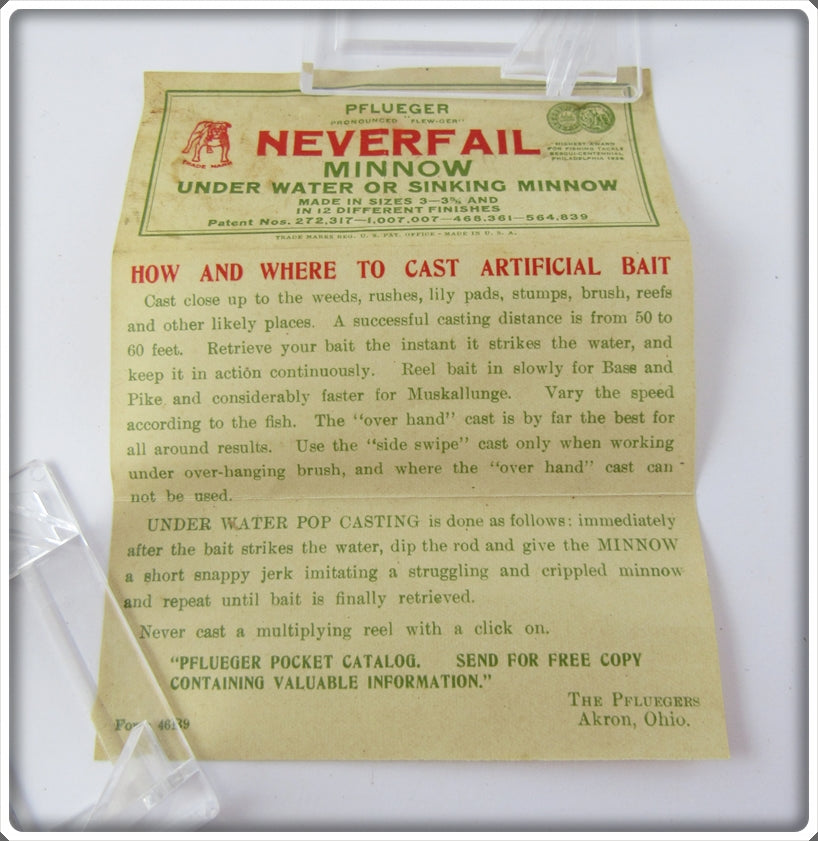 Pflueger Empty Box For White Red Head Underwater Neverfail Minnow