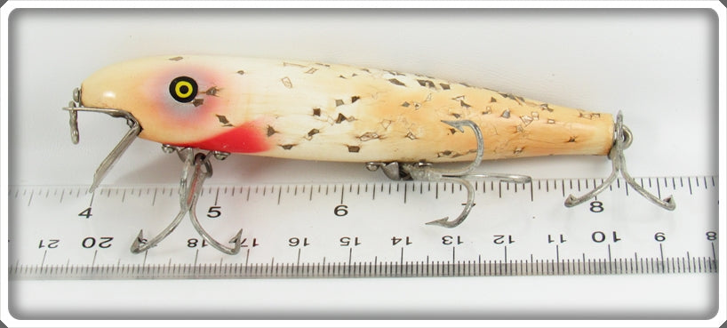 This is a nice old Pflueger White Gold Sparks Palomine lure that was sold on Lure Lagoon! Vintage old fishing lures are added for sale often so keep checking back! I buy old lures so feel free to contact me if you have any to sell.