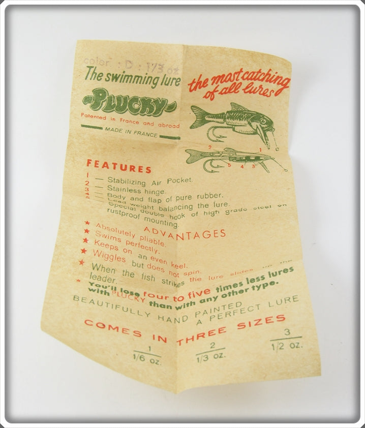 This is a nice old Plucky lure that was sold on Lure Lagoon! Vintage old fishing lures are added for sale often so keep checking back! I buy old lures so feel free to contact me if you have any to sell.
