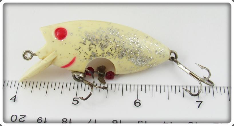 This is a nice old Poe's Ghost Silver Glitter Loco Motion lure that was sold on Lure Lagoon! Vintage old fishing lures are added for sale often so keep checking back! I buy old lures so feel free to contact me if you have any to sell.