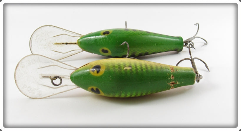This is a nice old Poe's Green Crawdad lure pair that was sold on Lure Lagoon! Vintage old fishing lures are added for sale often so keep checking back! I buy old lures so feel free to contact me if you have any to sell.
