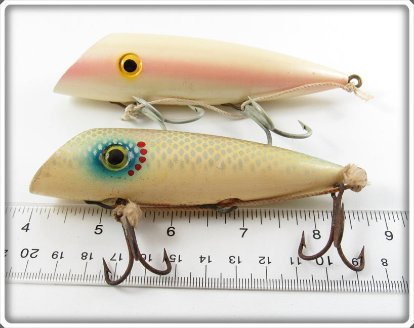 This is a nice old Rosegard Shiner Scale & Pearl Pink Salmon Plug lure pair that was sold on Lure Lagoon! Vintage old fishing lures are added for sale often so keep checking back! I buy old lures so feel free to contact me if you have any to sell.