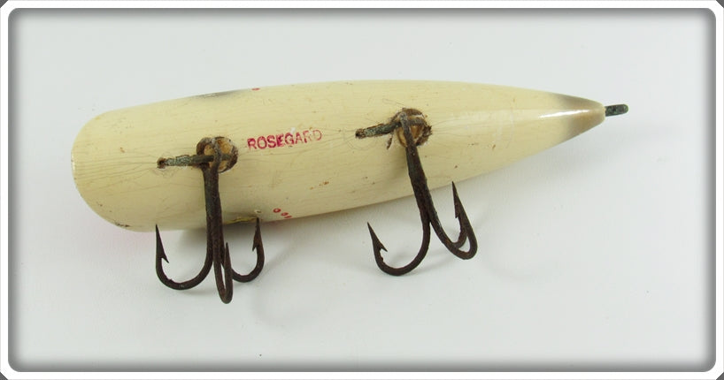 This is a nice old Rosegard White Red Gill Salmon Plug lure that was sold on Lure Lagoon! Vintage old fishing lures are added for sale often so keep checking back! I buy old lures so feel free to contact me if you have any to sell.