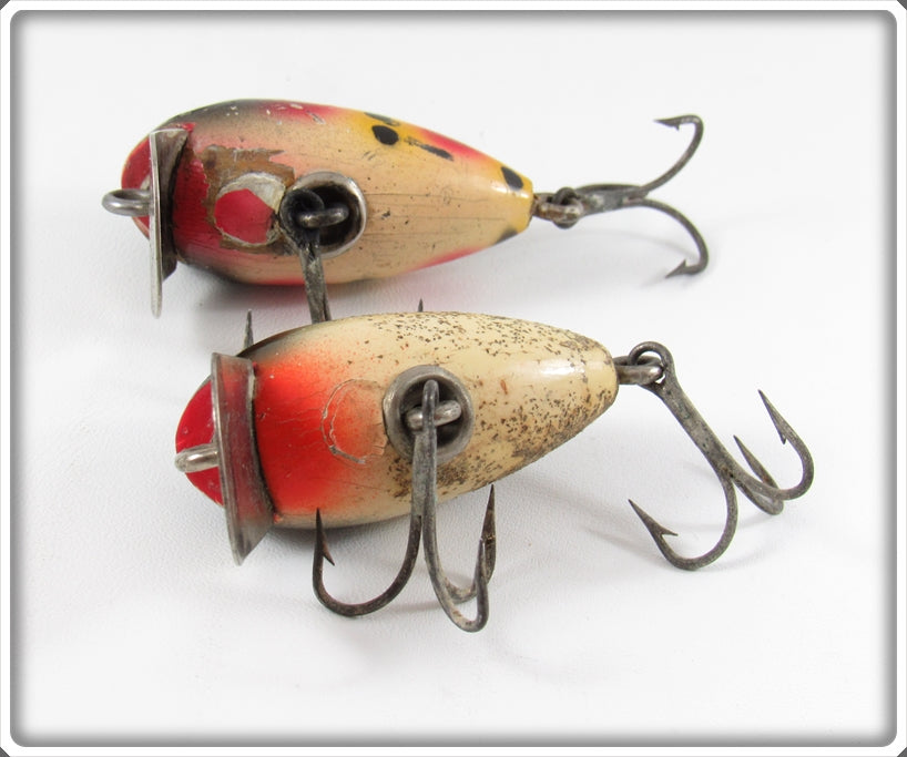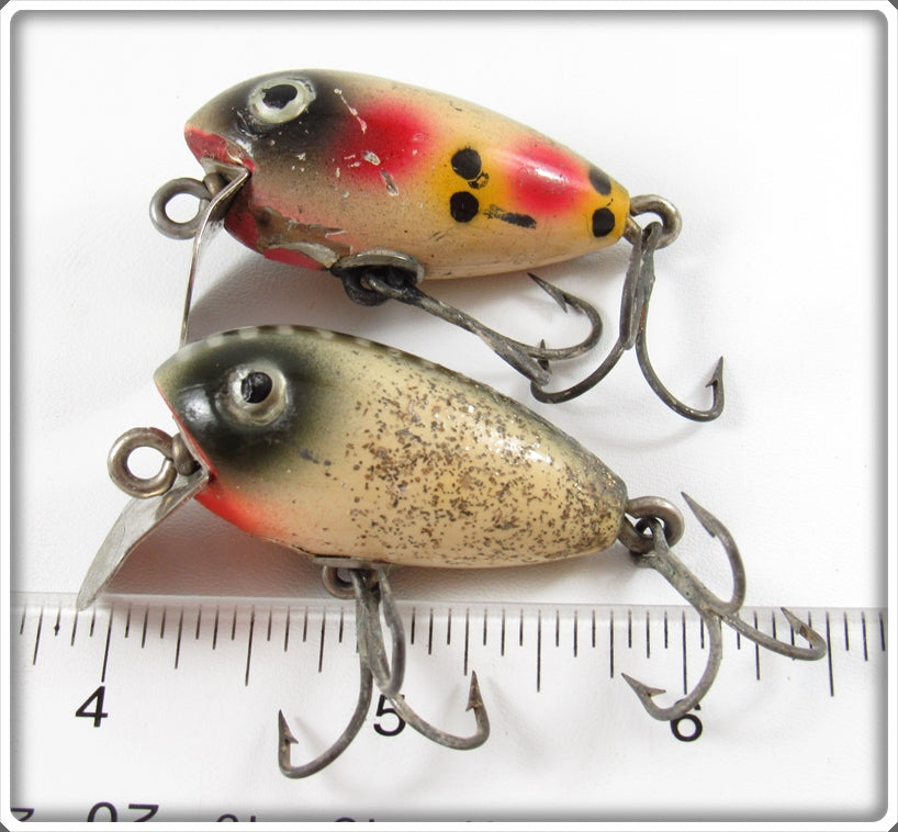 This is a nice old Shakespeare Strawberry Spot and Silver Flash Grumpy lure pair that was sold on Lure Lagoon! Vintage old fishing lures are added for sale often so keep checking back! I buy old lures so feel free to contact me if you have any to sell.