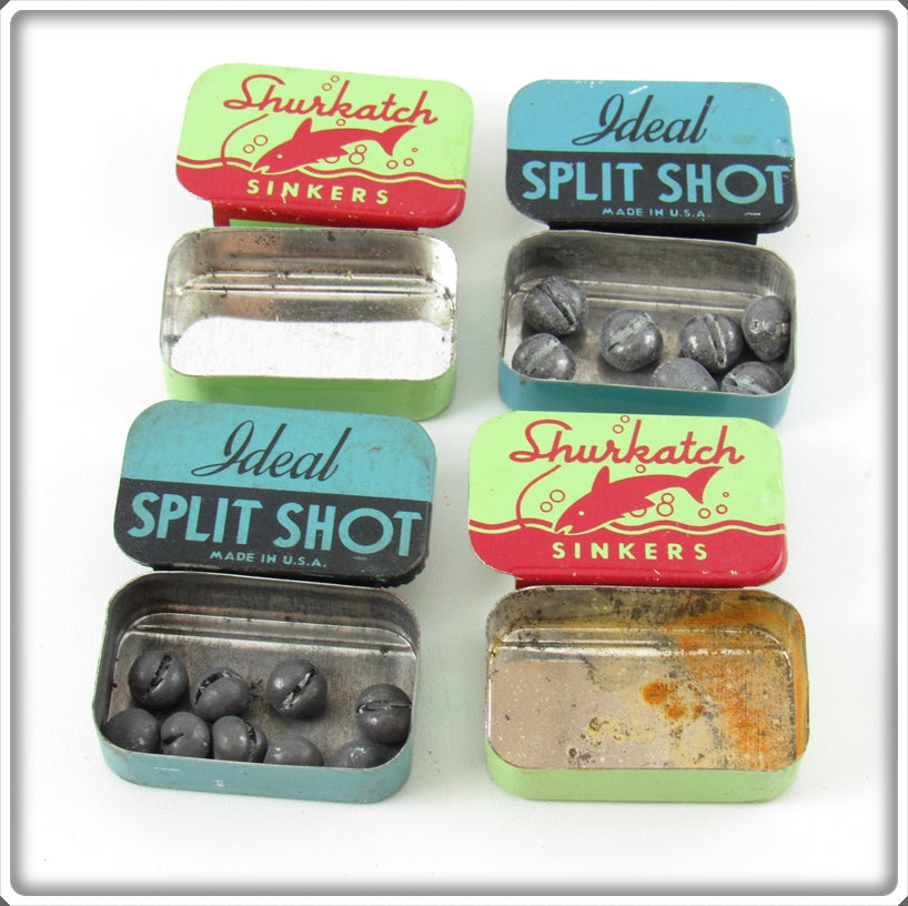 Shurkatch & Ideal Split Shot Tin Lot Of Four