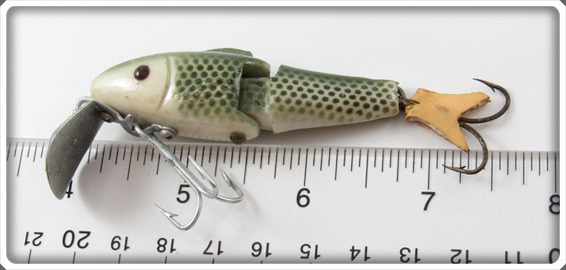 This is a nice old Simmons Bait Co Green Scale Shadrach lure that was sold on Lure Lagoon! Vintage old fishing lures are added for sale often so keep checking back! I buy old lures so feel free to contact me if you have any to sell.