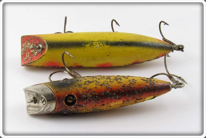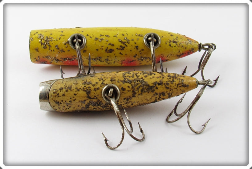 This is a nice old lure pair that was sold on Lure Lagoon! Vintage old fishing lures are added for sale often so keep checking back! I buy old lures so feel free to contact me if you have any to sell.
