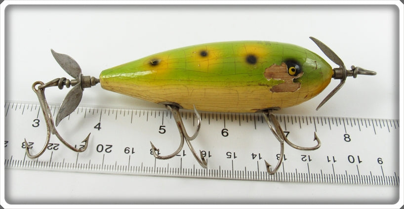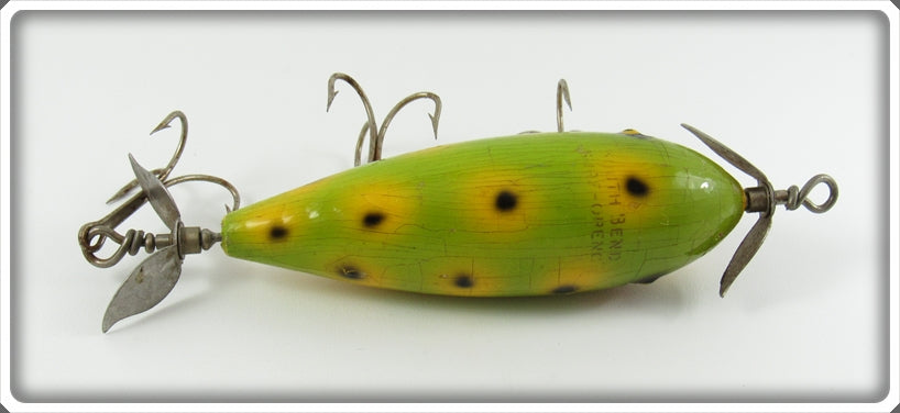 This is a nice old South Bend Frog Spot Surf Oreno lure that was sold on Lure Lagoon! Vintage old fishing lures are added for sale often so keep checking back! I buy old lures so feel free to contact me if you have any to sell.