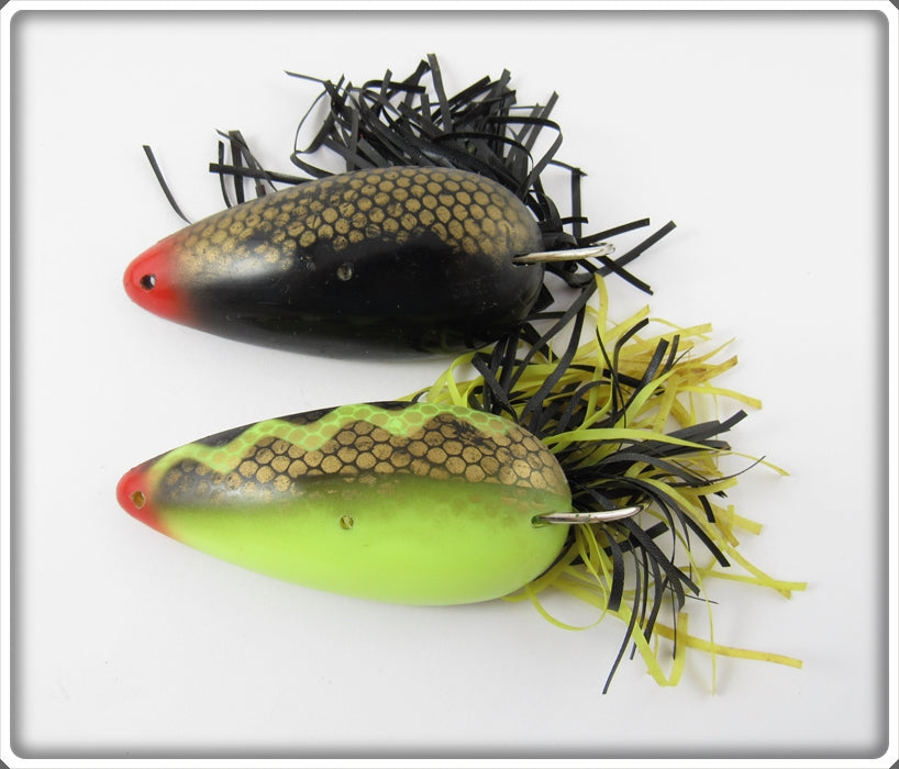 This is a nice old lure pair that was sold on Lure Lagoon! Vintage old fishing lures are added for sale often so keep checking back! I buy old lures so feel free to contact me if you have any to sell.