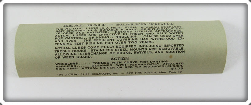 This is a nice old The Actual Lure Co Real Minnow lure that was sold on Lure Lagoon! Vintage old fishing lures are added for sale often so keep checking back! I buy old lures so feel free to contact me if you have any to sell.