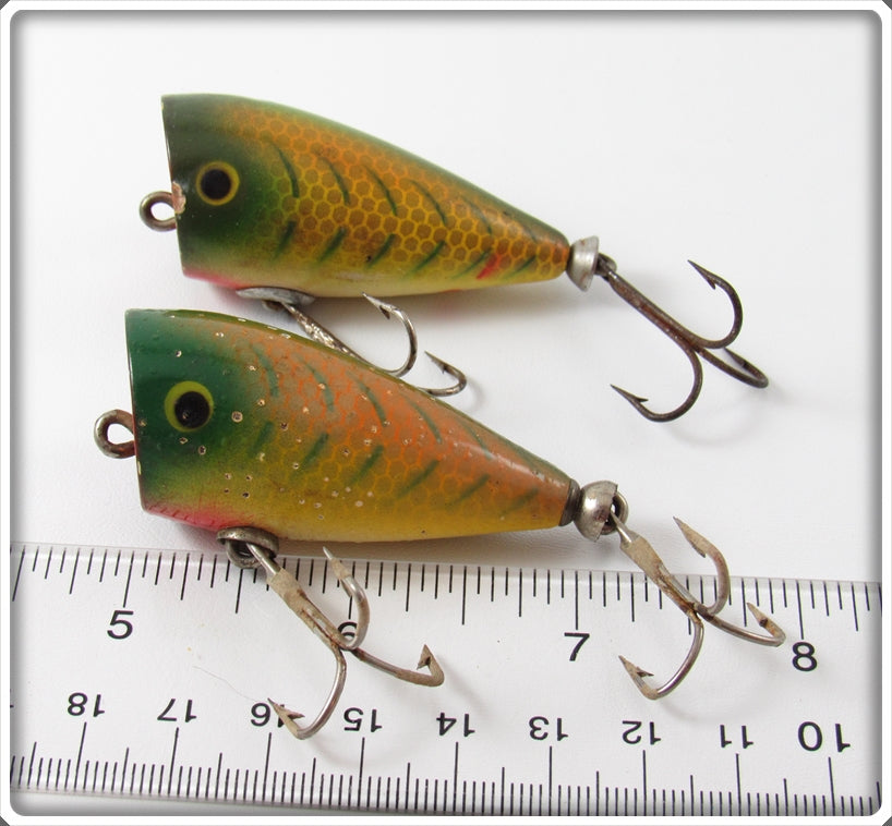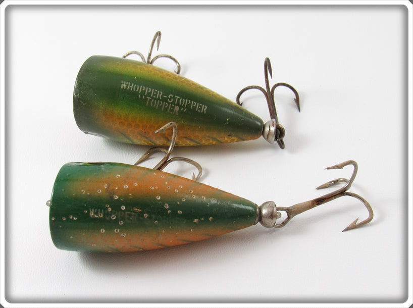 This is a nice old Whopper Stopper Topper lure pair that was sold on Lure Lagoon! Vintage old fishing lures are added for sale often so keep checking back! I buy old lures so feel free to contact me if you have any to sell.