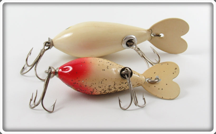 This is a nice old Whopper Stopper White & Red Flitter lure pair that was sold on Lure Lagoon! Vintage old fishing lures are added for sale often so keep checking back! I buy old lures so feel free to contact me if you have any to sell.
